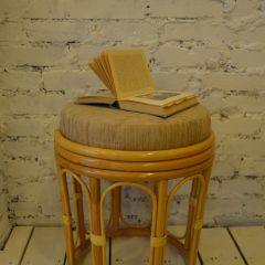 Пуф из ротанга с мягким сиденьем.